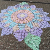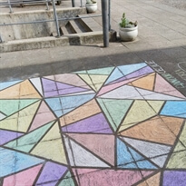 TIP: Har I fliser lagt i en cirkel eller et andet mønster kan det bruges som en skabelon for en flot mandala eller brug bredt tape til at skabe geometriske former som kan farvelægges.