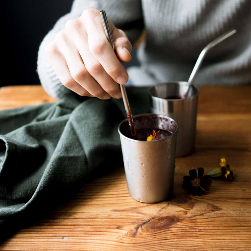 Sugerør i rustfrit stål bøjet 4 stk.+ børste