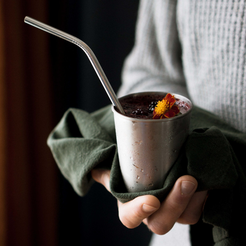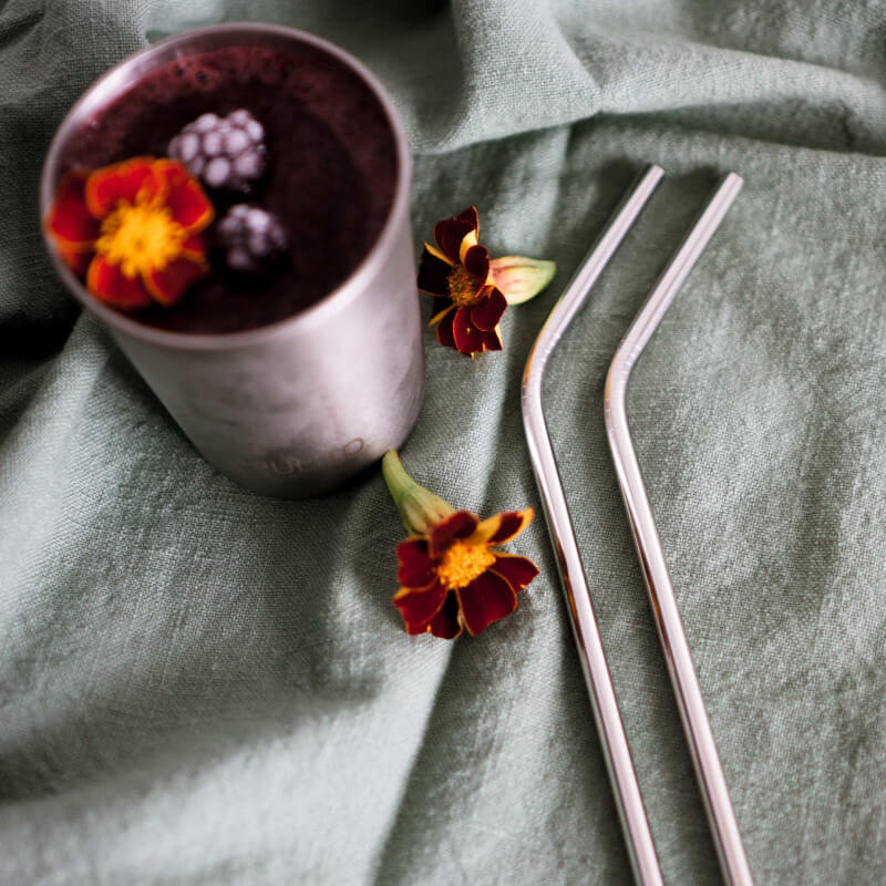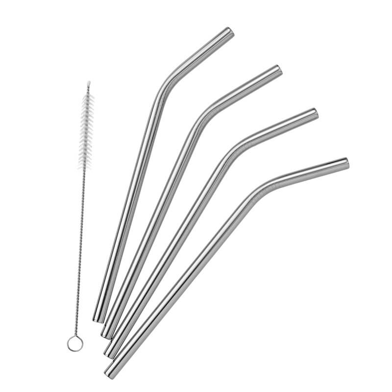 Sugerør i rustfrit stål bøjet 4 stk.+ børste