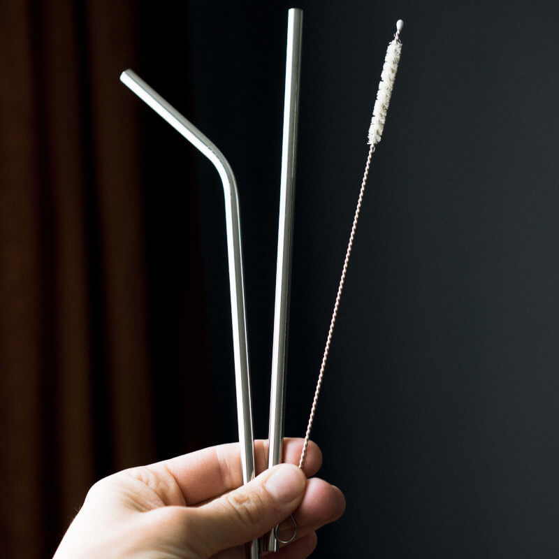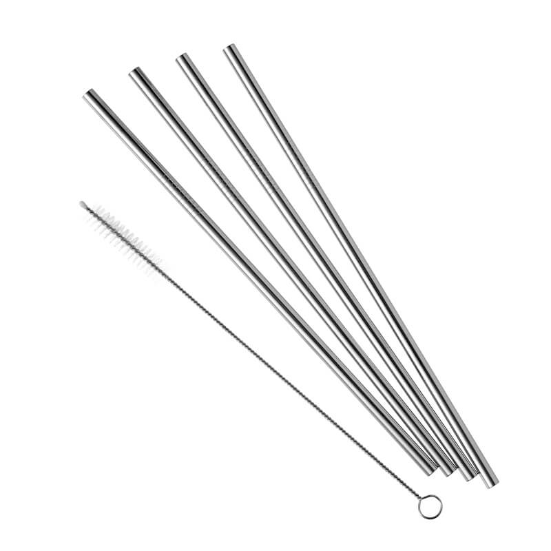 Sugerør i rustfrit stål lige 4 stk.+ børste